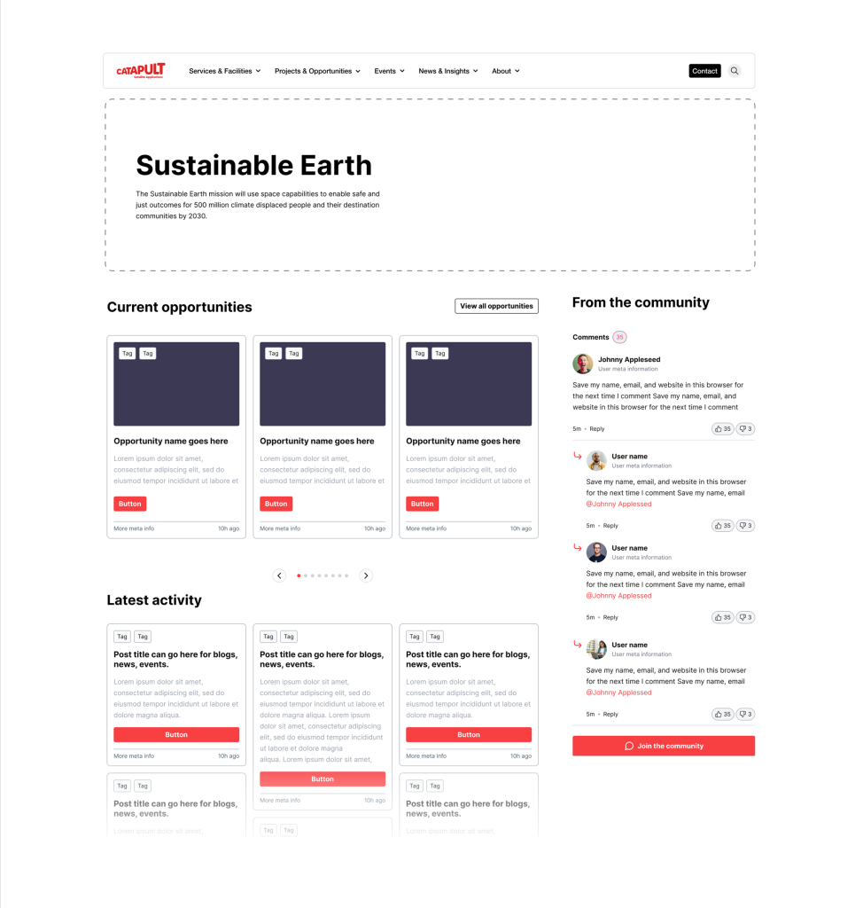 One of the key challenges was the site’s overly simplified navigation and siloed content, which frequently left users at dead ends. With essential information buried behind a conventional burger menu, visitors struggled to gain a comprehensive view of Satellite Application Catapult’s offerings.